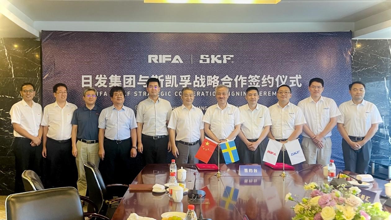 8月19日下午,浙江日發控股集團有限公司(以下簡稱日發集團)與斯凱孚中國正式簽署戰略合作協議,共同探索在高端制造領域的發展新機遇,雙方也將進一步交流數字化和低碳化轉型經驗,為賦能中國制造業智能、綠色發展貢獻力量。